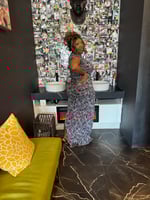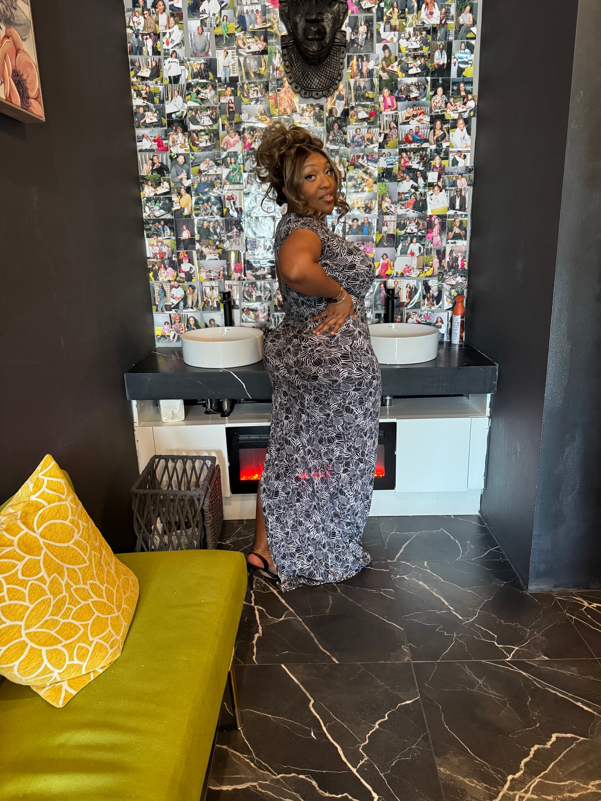 Wrapped in a bold floral print with a thigh-high slit that refuses to be ignored.