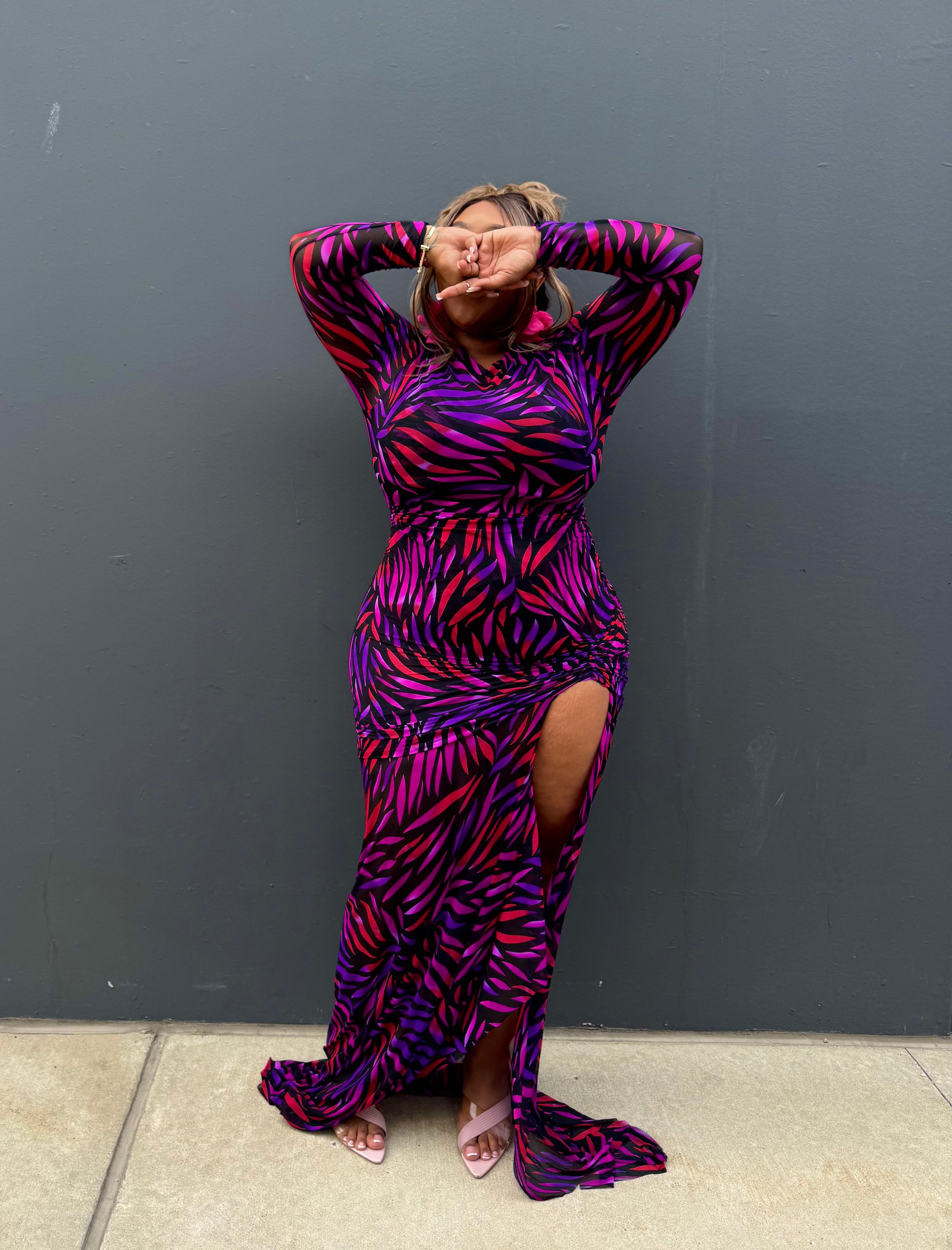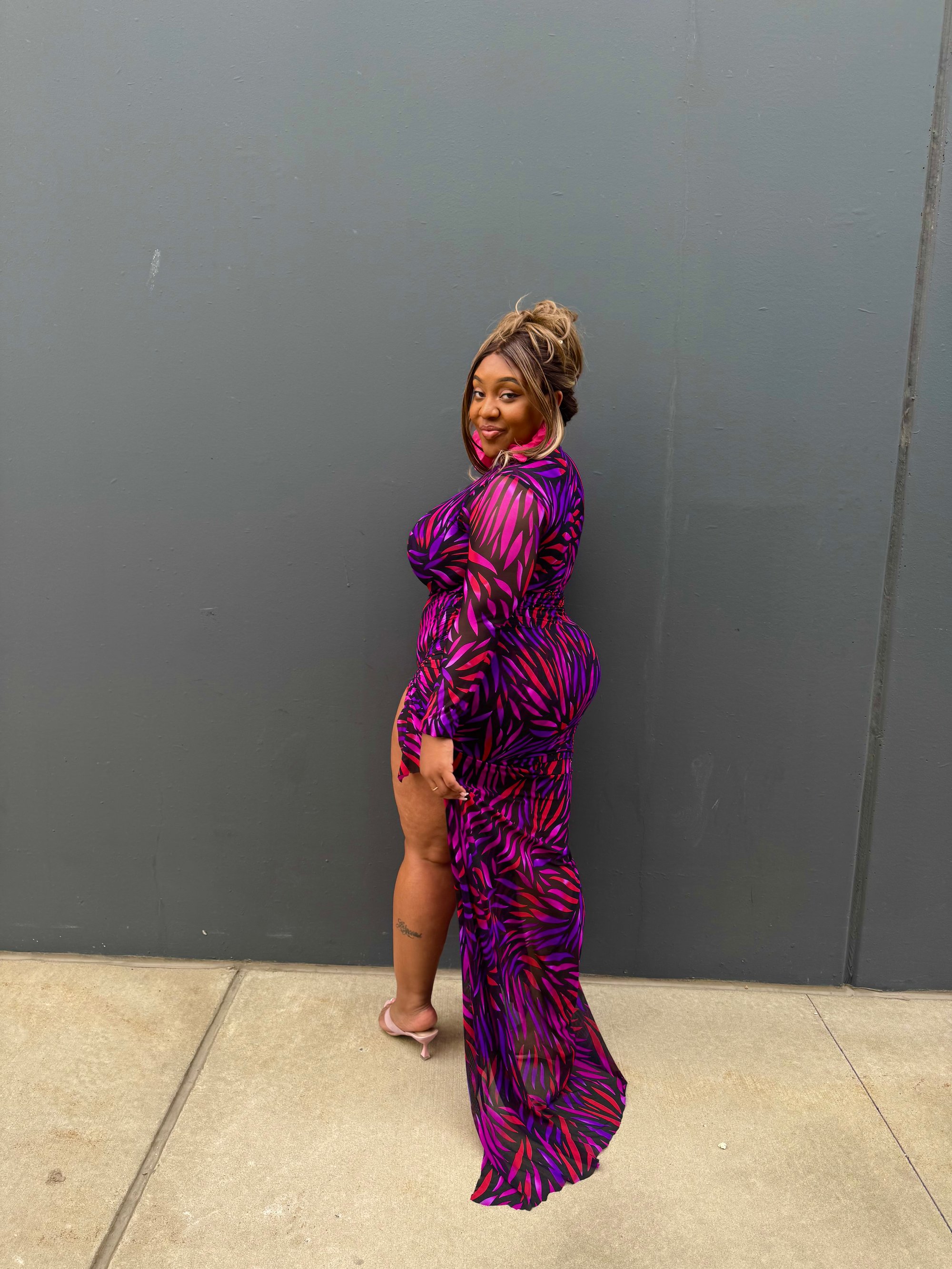 First, let me say, I LOVE THIS FABRIC PRINT. The colors and design are such a vibe!! Made to stand out!!! The Vixen Dress hugs your curves and doesn’t ask for permission. With a double lined mesh body and a bold fit that moves with confidence, this is the dress you throw on when subtlety is not the assignment.